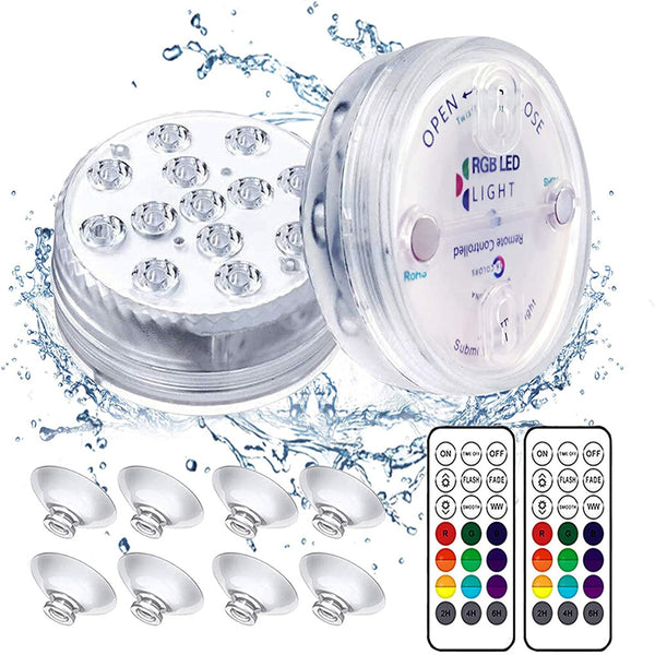 Homemory LED Submersible Lights can provide 12 or 16 different colors. It can ruggedly work in a dry and wet place, such as swimming pool light, pond light, foundation, vase, flower pot, bathroom, spa, hot tub. You also can can hang your light on christmas tree and paper lantern. And the lights have timer function(2h,4h,6h,24h) and remote control(can easily remote the submersible lights underwater). It can give you more choices, and create a more beautiful atmosphere.