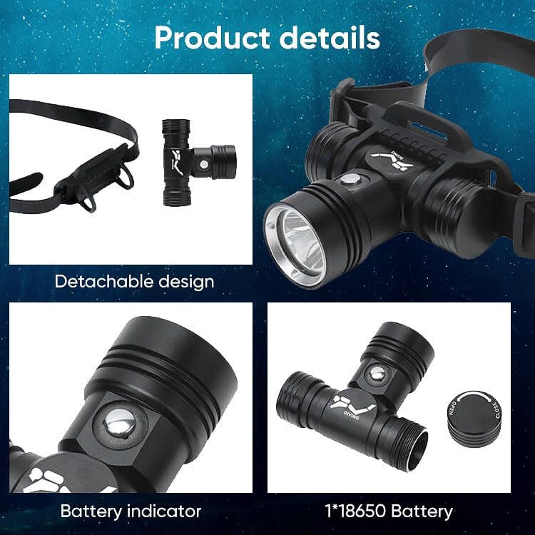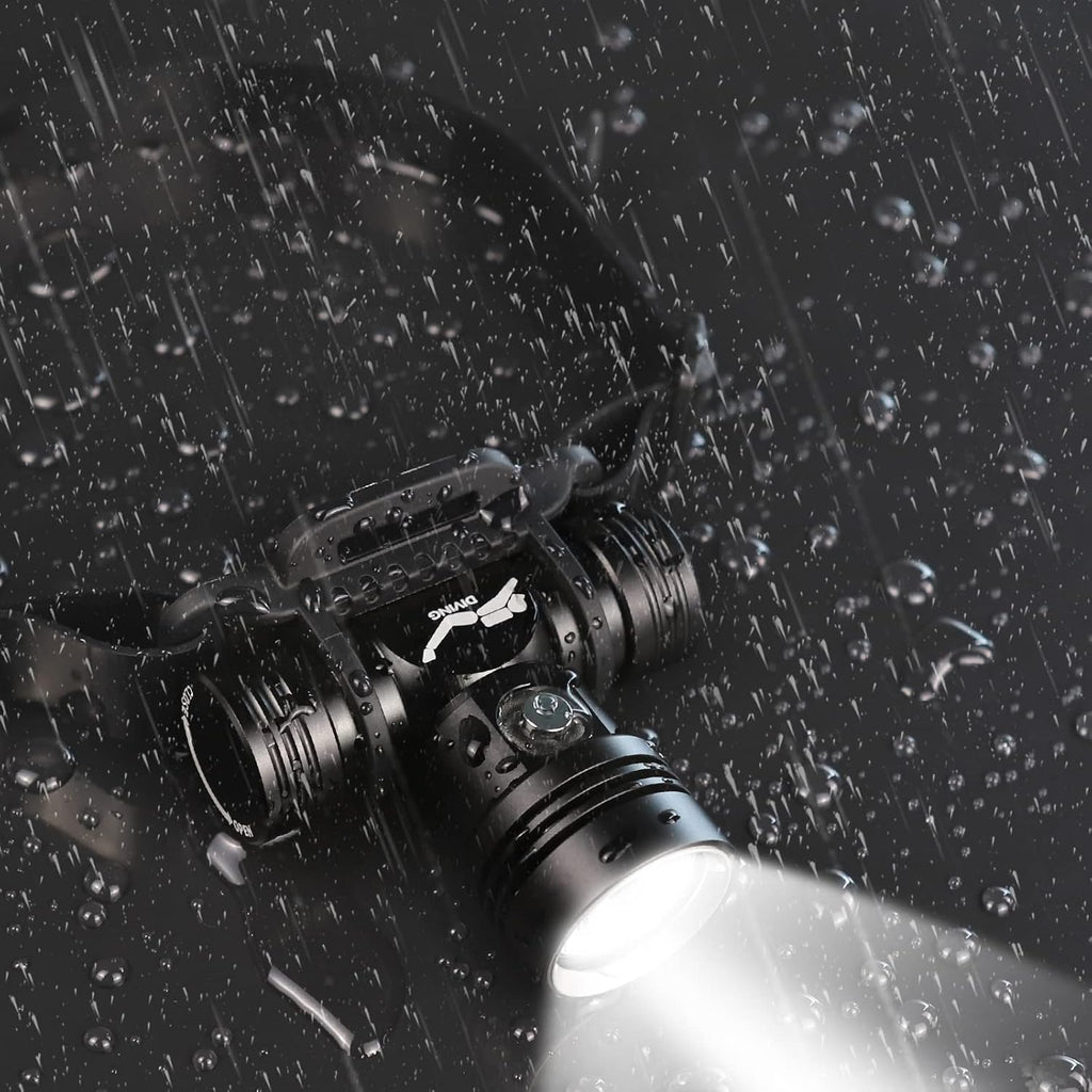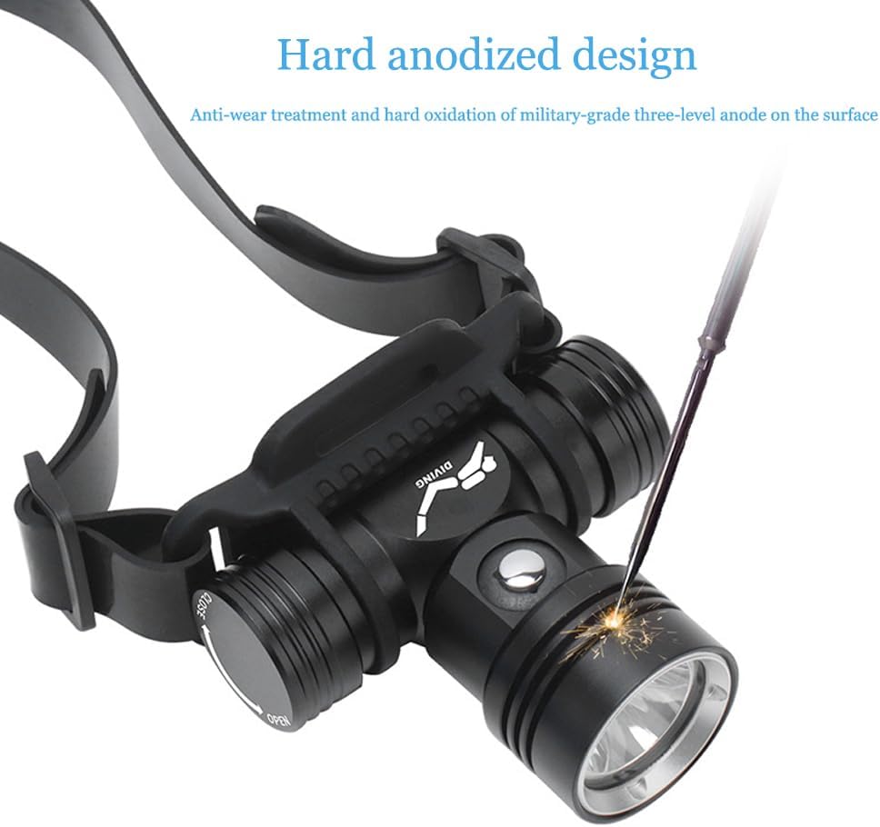 【Professional IPX8 Waterproof】 The underwater headlamp flashlight for diving is made of high penetration thickened toughened glass lens and high hardness aviation aluminum. Our underwater flashlight for diving is IPX8 waterproof, shockproof, seawater corrosion resistance, scratch resistance, the scuba diving light can be submerged up to 262 ft.