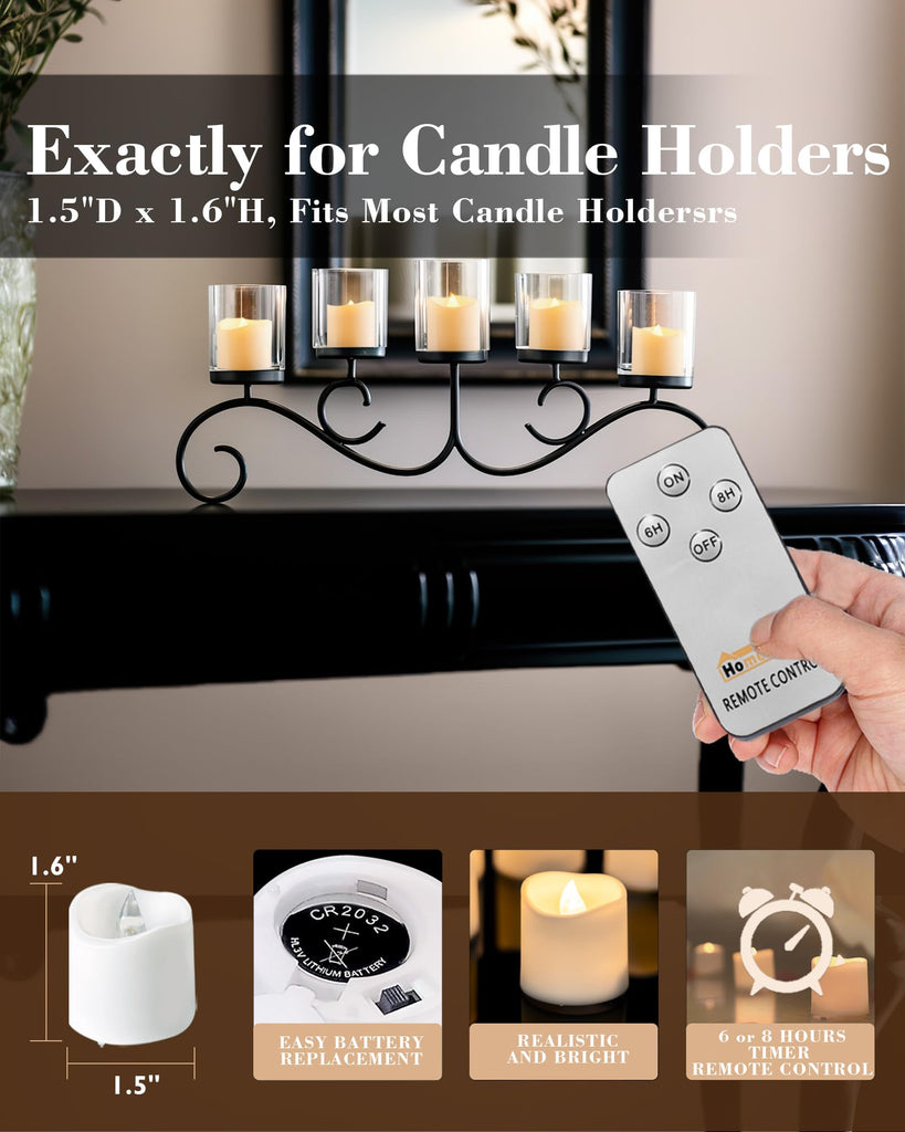 - [High quality flameless candles]: we use top notch high end wax like plastic to replicate the feel and appearance of real wax candles; each electric candle measures at 1.5 x 1.6 inches, making it a perfect fit for most candle holders. WARNING: Button cell battery included. Keep out of reach of children. Please do not swallow or place it inside any part of the body!