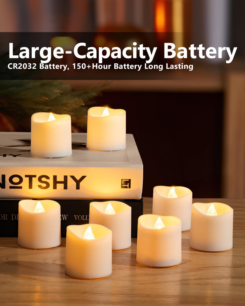 - [Super long battery life]: each flameless tealight candles, cr2032 battery is pre-installed; battery operated candles can provide more than 120 hours of lighting time, equivalent to 12 times that of traditional burning candles, can ensure that flameless votive candles continue to work throughout the wedding or party; when the battery is exhausted, you can replace the battery from the bottom and continue to use it.