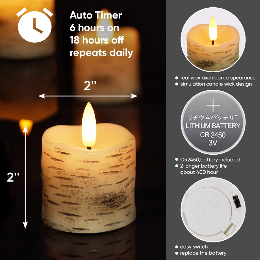 / Homemory 6 Pack Flameless Votive Candles with Timer, 2" x 2" Birch Bark Real Wax