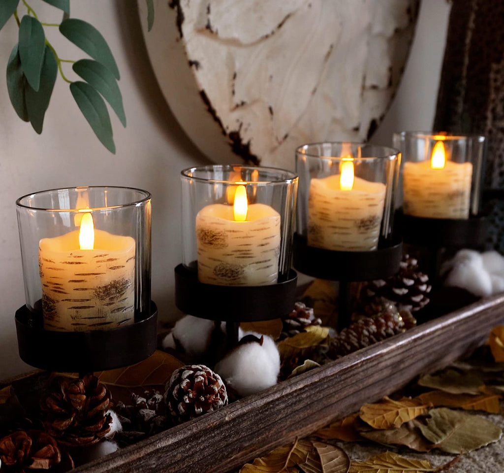 - [ Made of Real Wax ] New 3D flameless votive candles, each electric candle measures 2 x 2 inches. Melted edge design, birch bark real wax appearance, black wick, and simulated traditional burning candles flickering new 3D flameless. All this gives a more vivid and realistic appearance, instead of burning candles, which creates a soothing and relaxing ambiance.