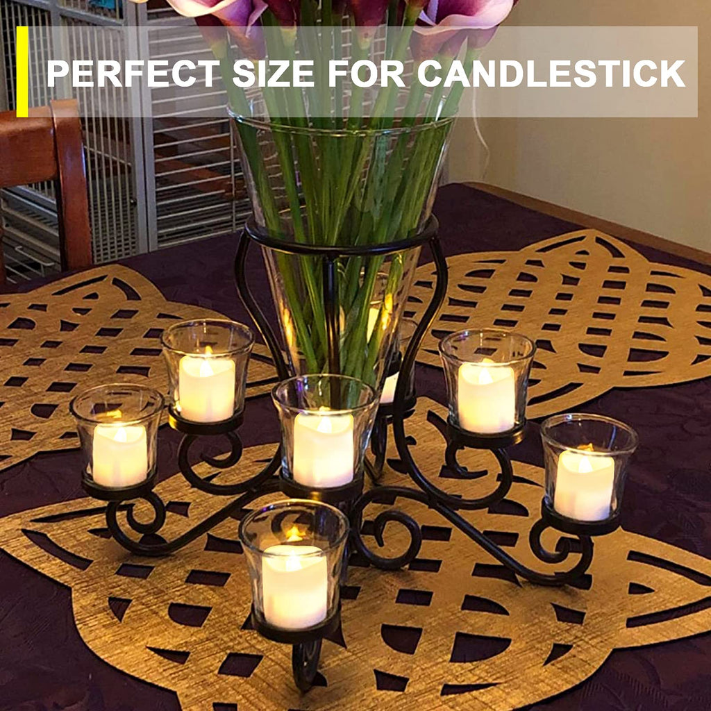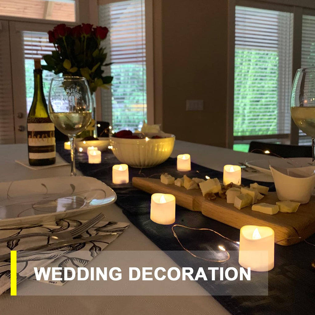 - [ Ideal for Home Decorations ] You can tuck these led votive candles into all kinds of places: Wedding, candlesticks, tabletops, bookshelves, wishing bottles,pretty votive holders, gift bags under the Christmas tree, into the tree itself, inside the shell of old candles, into greenery or flower arrangements on the table, etc.