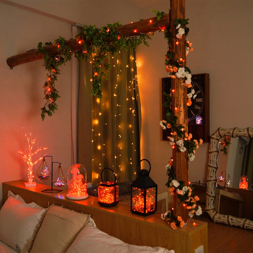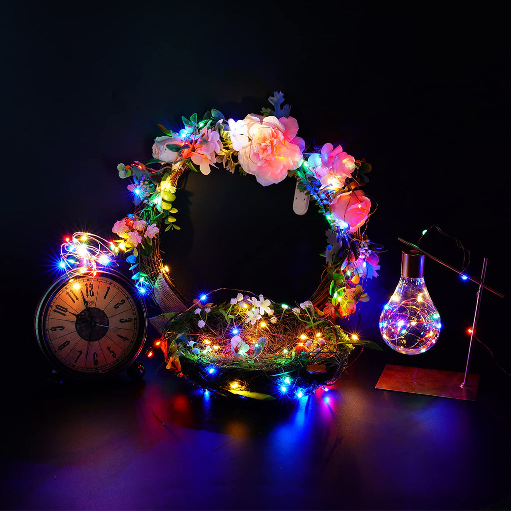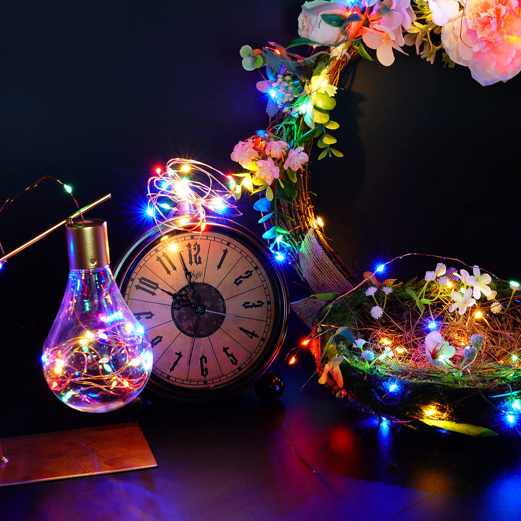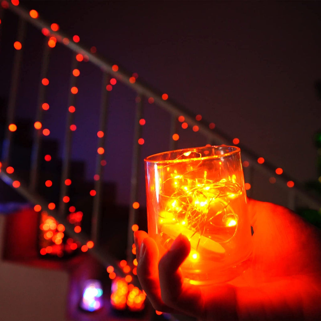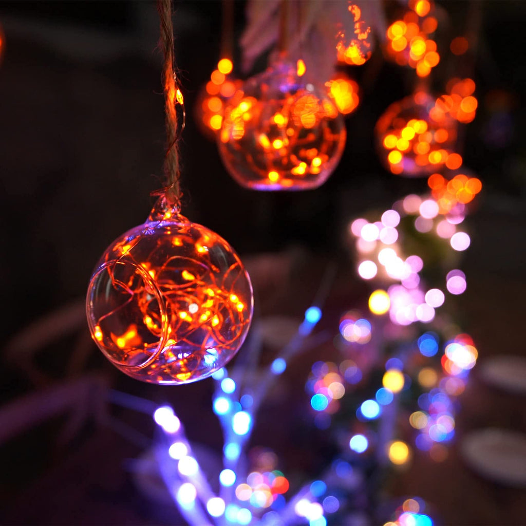 - Package Included--12 Pcs Halloween fairy lights in one pack, each has 20 LED on 6.6 ft, strings spacing 0.32 ft, powered by 2 x CR2032 batteries(included), no overheat even after hours of lighting, super bright Christmas fairy lights for Christmas DIY Bedroom Decor Holiday Wedding Party.