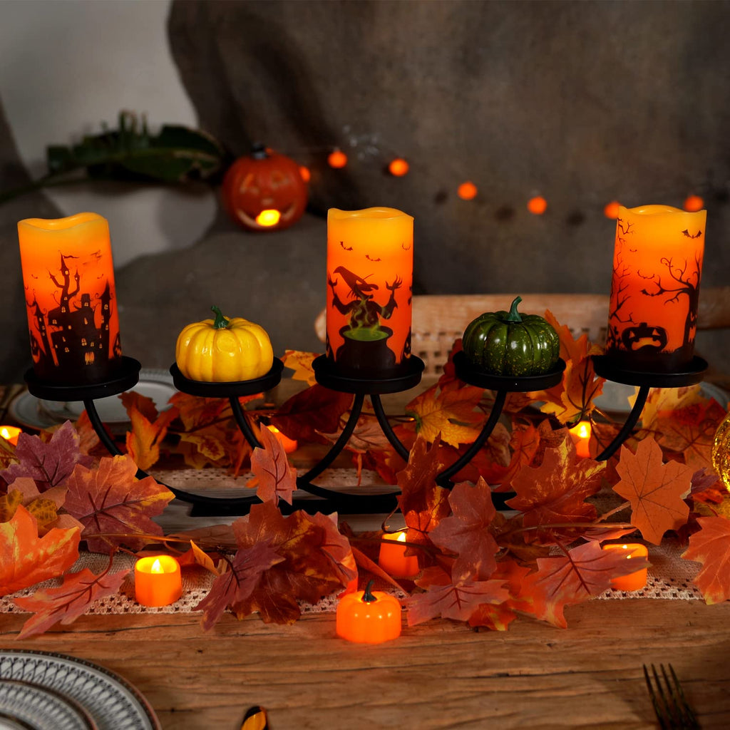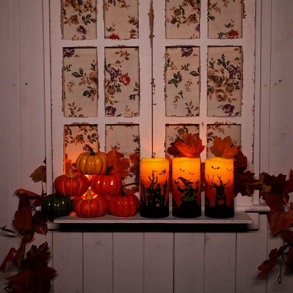 - Orange Candles for Halloween: Homemory orange flameless candles caters to the needs of the Halloween theme, adding witches, castles, trees, crows and other elements to the LED candles, which is very suitable for Halloween decoration.
