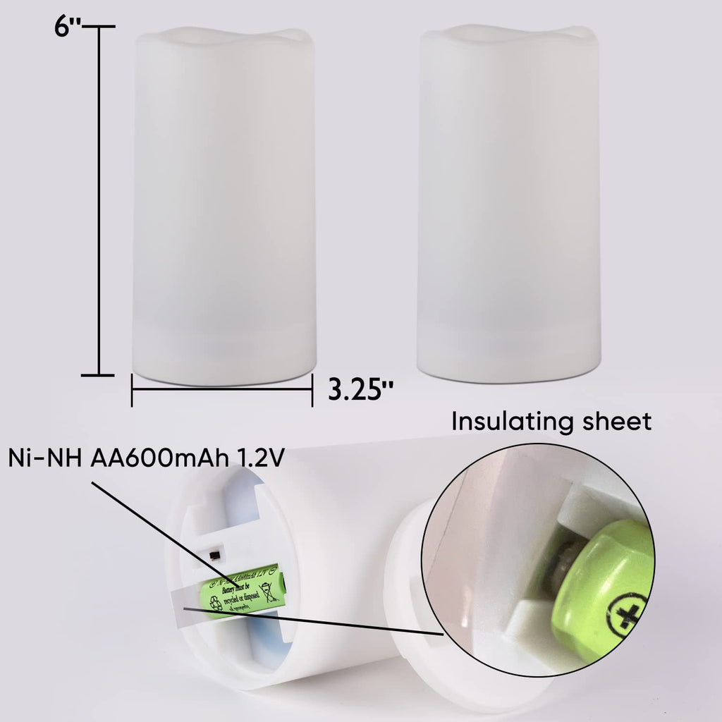 - Safe and Reliable Batteries: Each candle is equipped with a 1.2V Ni-MH AA rechargeable battery with 600 mAh large capacity, which is very safe, stable and reliable when used with solar charging board; even if the battery performance declines after a long period of use, it can be easily replaced by taking out the bottom cover (please do not replace it with ordinary batteries).