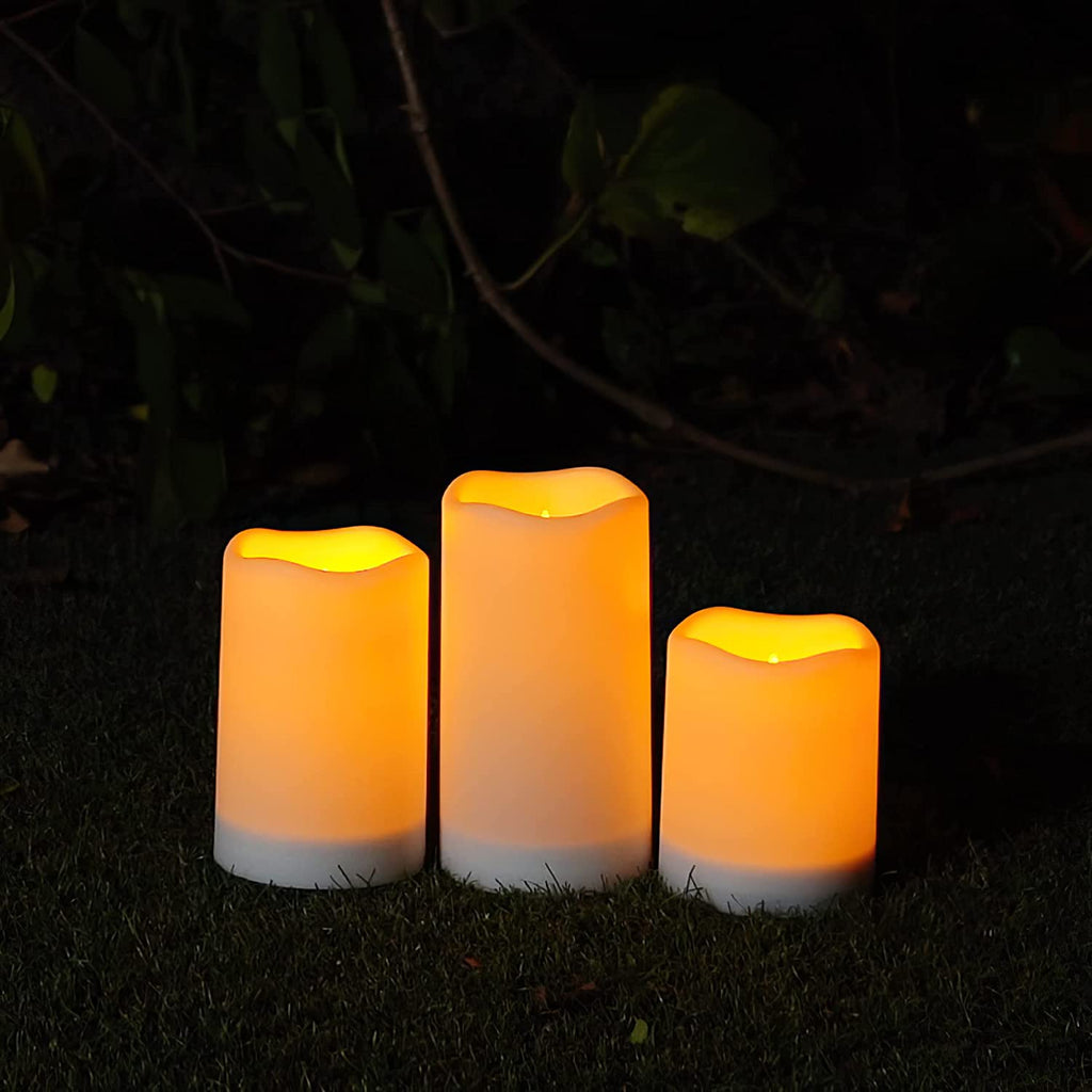 / Homemory Solar Powered Candles Outdoor Waterproof, Sensor Only, Dusk to Dawn, Solar Powered Candles for Outside, Lanterns, 3.25"x4"5"6", Set of 3