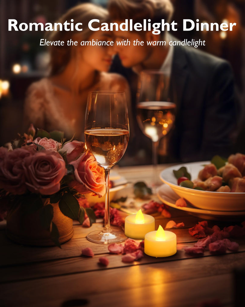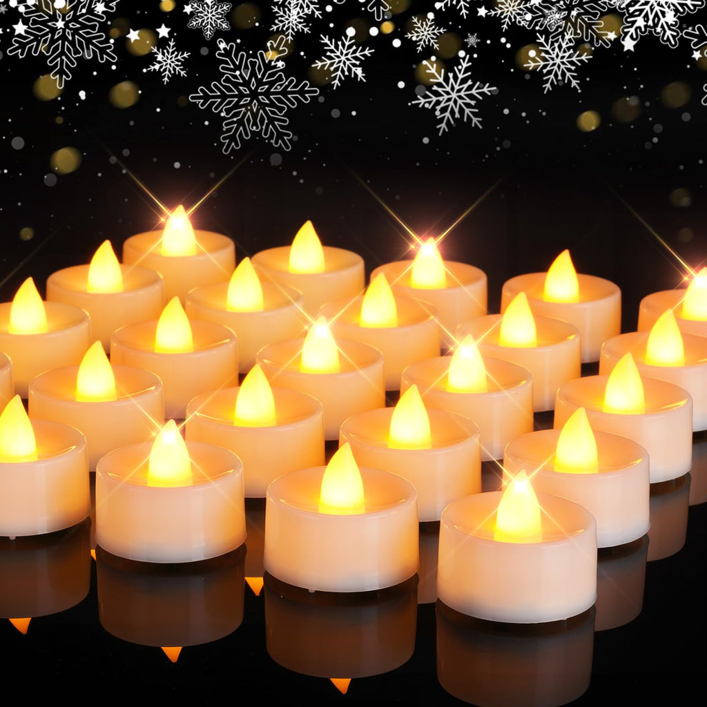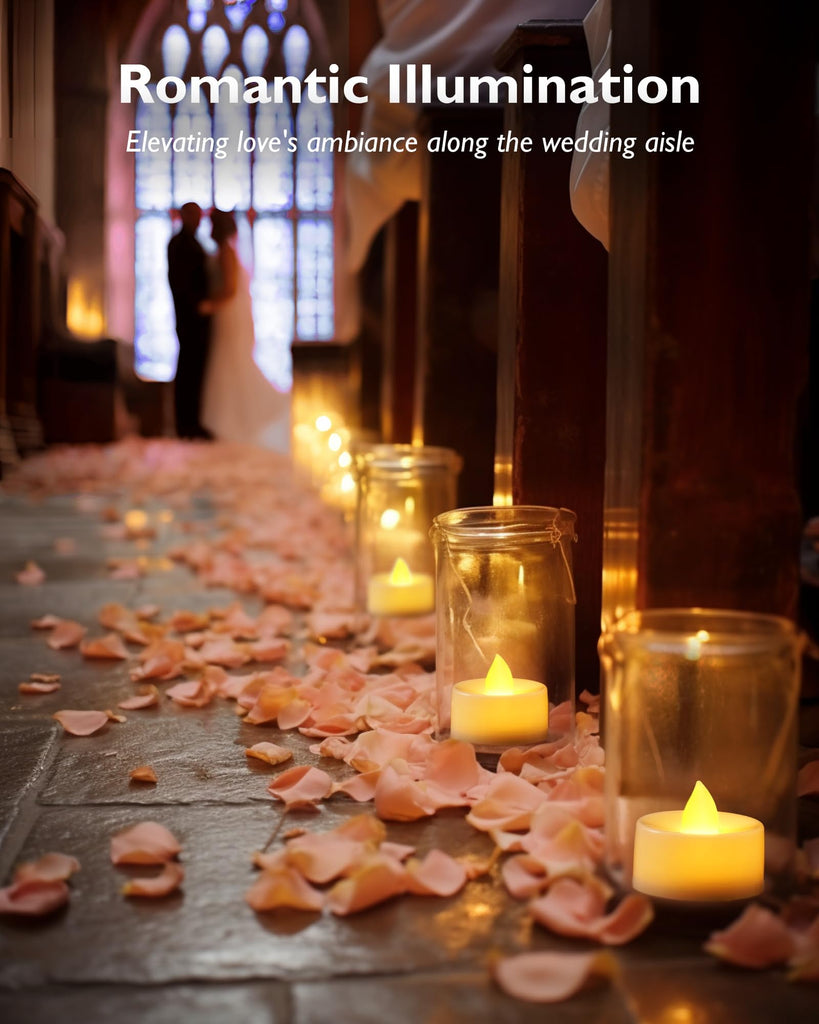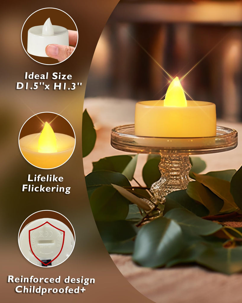 Value bulk set: 24pcs electric tea lights with high-quality batteries pre-installed, each battery has at least 150 hours lifetime. All this means less cost on tealights.