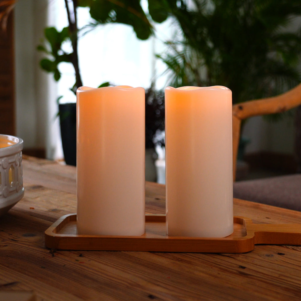 - 2 large outdoor flameless candles