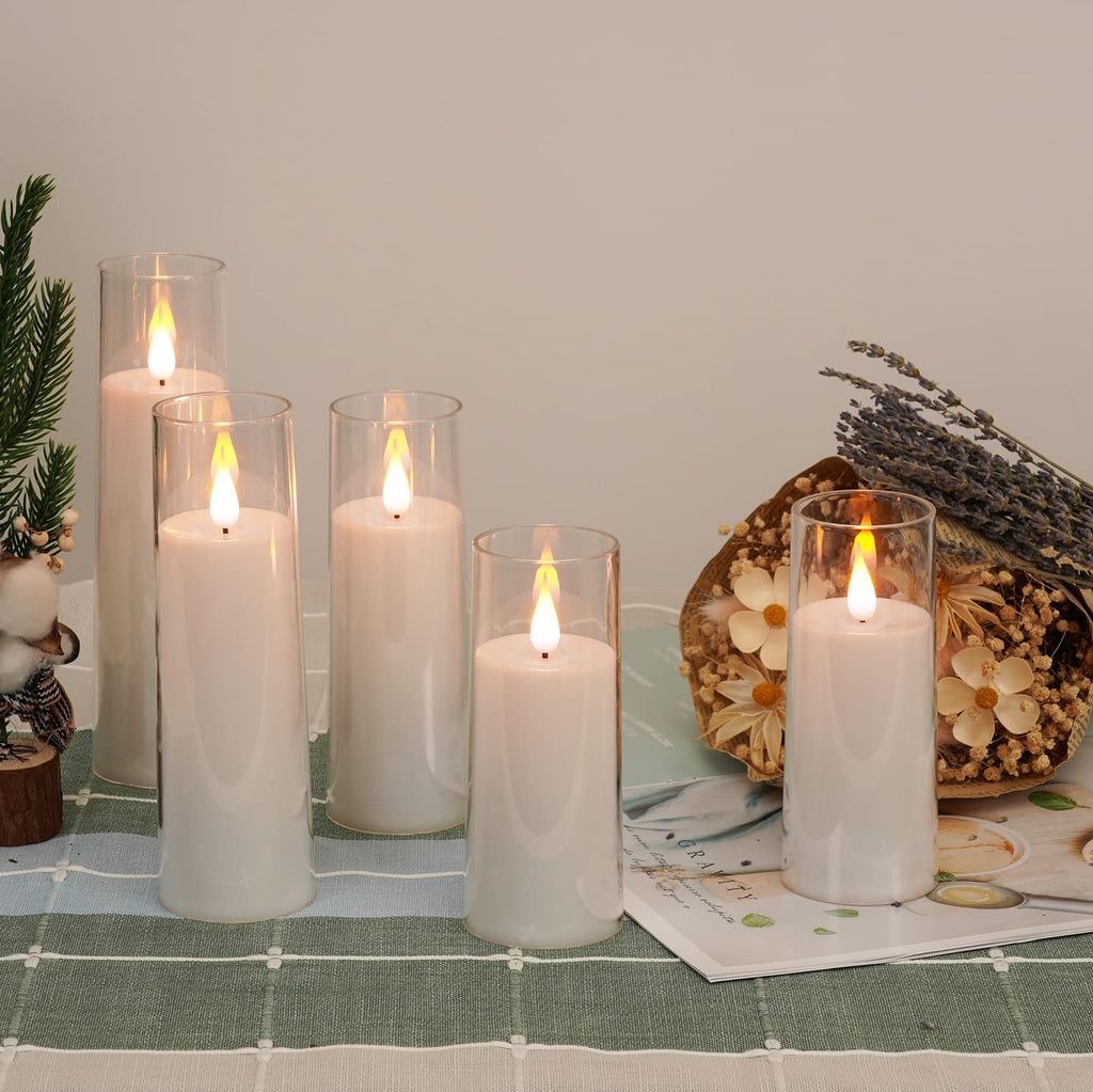 - Realistic Flameless Candles: Acrylic Candle Shell + 3D flame, flickering softly and giving these battery candles a warm yellow and blue glow, creating a cozy feeling, which is perfect for home, festival decorations,and gifts.